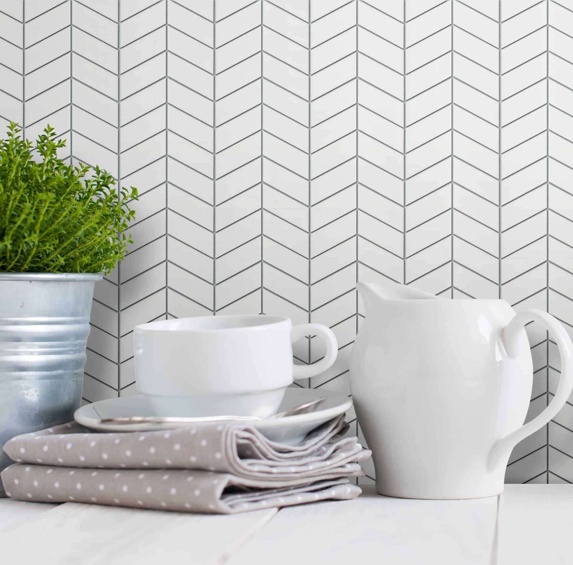 The linear chevron look of Horizon tiles will add an original feel of movement to your backsplash or floor. Their angular shape is sure to remain a classic for years to come!